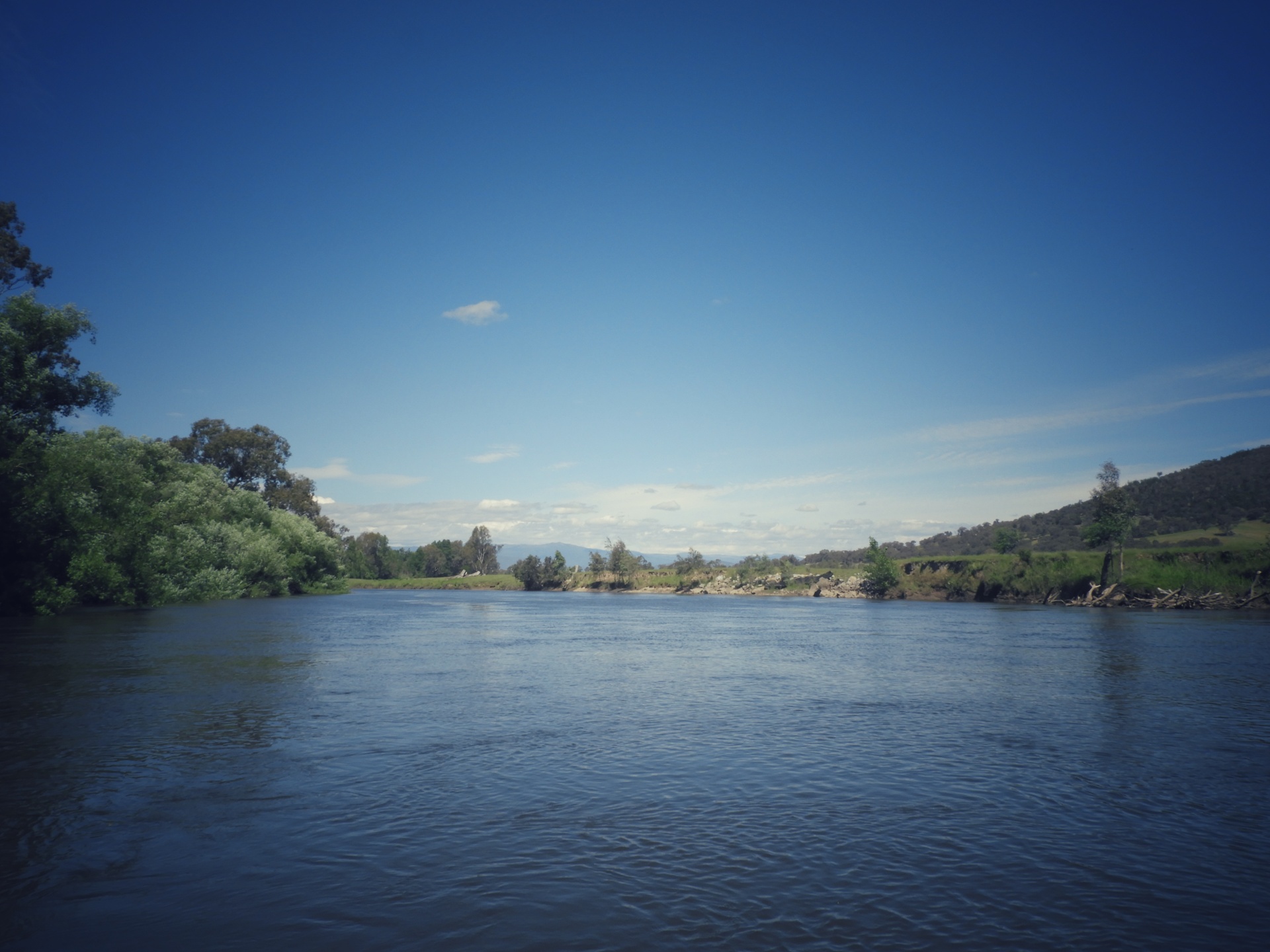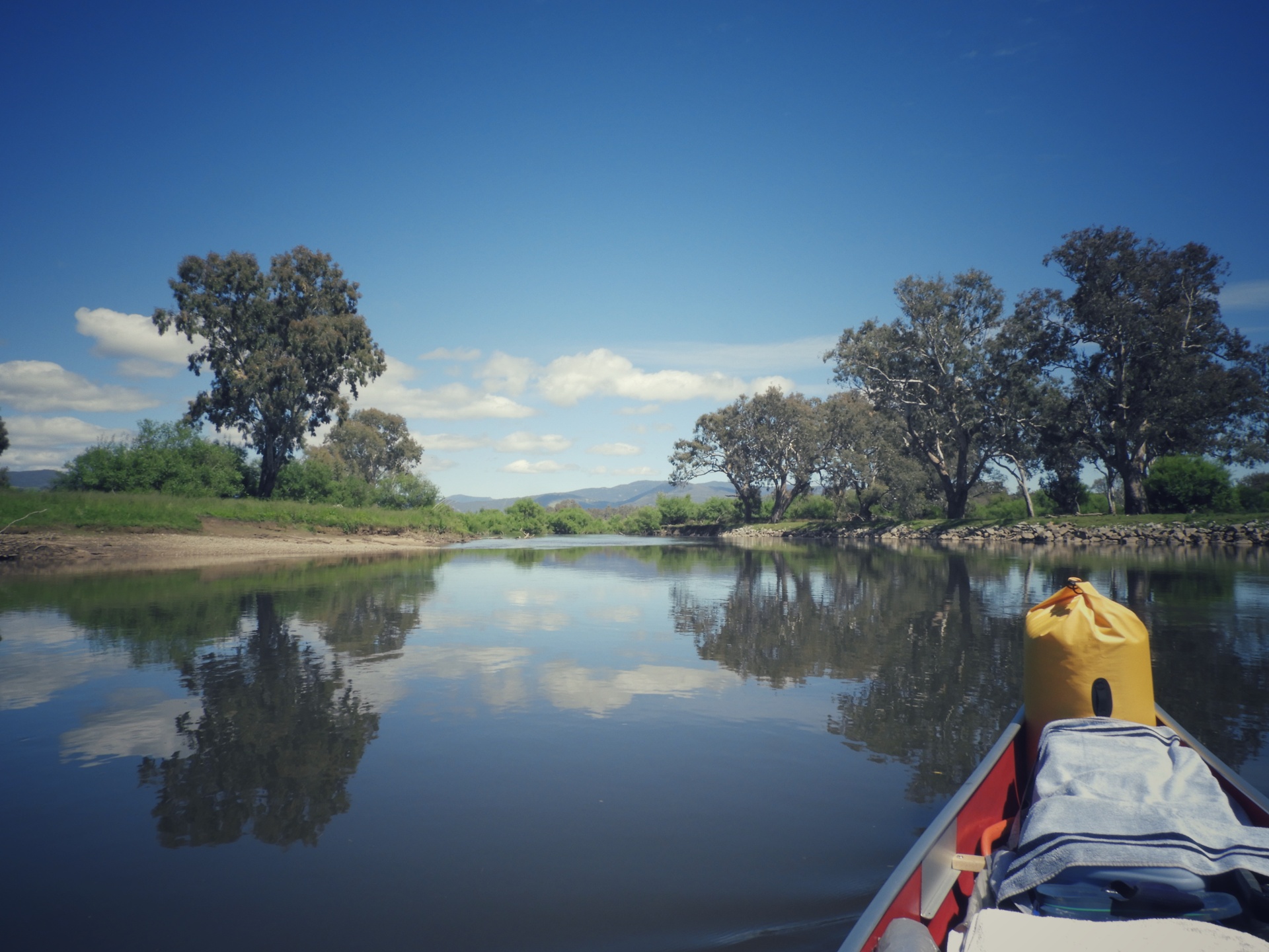 Majd 50 km haladtunk és estére már Walwa mellett a kempingben aludtunk. Amikor megéreztem hogy még elérhetjük a “csatlakozást” a forró zuhanyhoz, kétszeres erővel lapátoltam. Ma is volt egy meleg szituáció, de ma szerencsére sikerült elkerülni a vízbetörést. Csak szegény Charlotte feneke bánta a dolgot. A folyó esése egyelőre nem sokat változott, bár talán mintha egyre gyakrabban lennének nyugodtabb szakaszok, bár az is látszik, hogy szokott itt ennél nagyobb víz is lenni.