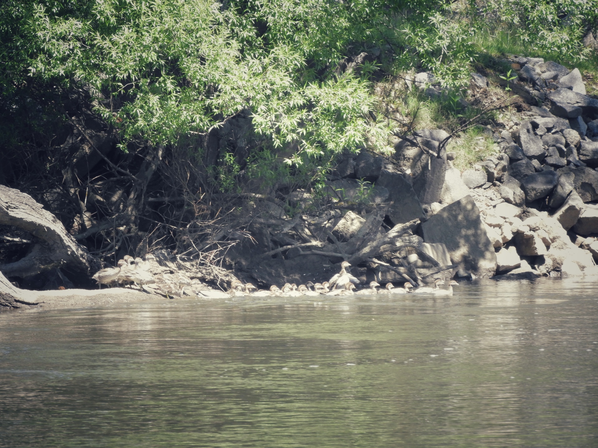 Számos vízi és víz környéki szerzettel találkoztam Láttam természetesen madarakat és még rakalikkal is találkoztam . (Bővebben itt) A nap fénypontja azonban egy rendkívüli találkozás volt. Ahogyan haladtam egyszercsak felbukkant a hajó előtt úgy 6 – 8 m-re valami. Amint megpillantott azonnal egy bukófordulót vett és eltűnt a mélybe. Annyi időm maradt azonban, hogy egyértelműen felismerjem a “kacsacsőrt” és a felette ülő apró jellegzetes szemeket. Egyértelmű volt, hogy kacsacsőrű-emlőssel találkoztam. Nagyon ritka tünemény, hogy az ember szabadban találkozzon velük. Még olyan helyen is, ahol tenyésztik, vagy betelepítik őket, ott is nagy szerencse és türelem kell a találkozáshoz. Sajnos nem sikerült képet készítenem egyikőjükről sem, mert vagy nagyon gyorsan alábuktak, vagy a szituáció nem engedte, hogy az évező helyett a kamerához nyúljak.