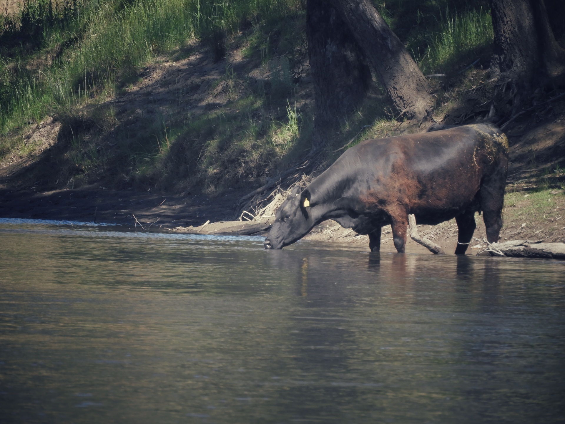 Ma leckét vettem a szarvasmarhák intelligenciájának tárgyában. Egy csapatnyi marha [sic!] heverészett a parton. Érkezésemkor felkerekedett a csapat és velem párhuzamosan vágtázva menekülni (?) próbált. Én csak eveztem, ők meg menekültek mellettem.(!) Éreztem hogy ez így majd nem mehet a végtelenségig, és valóban egyszercsak a folyóra merőleges kerítés útjukat állta. Mindannyian rátömörültek a kerítésre, és megszámlálhatatlan, csalódott szempár kísérte távolodásomat. Őket sem az eszük miatt szeretjük. Egy másikkal később aztán közelebbről is találkozhattam.