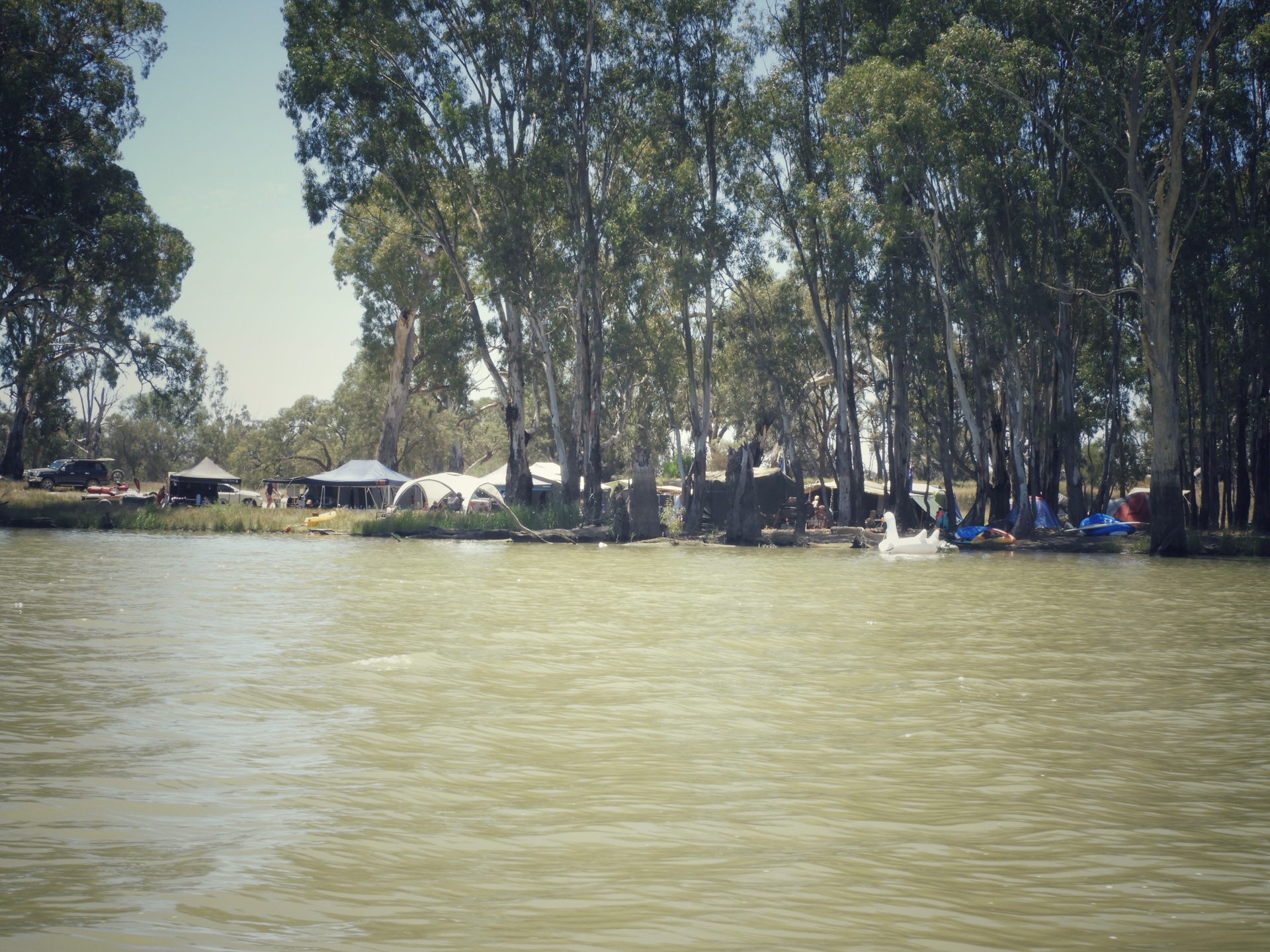 Az esztendő utolsó napját a folyón töltöttem, Moorook-tól északra. Meglehetősen gondosan választottam meg a helyet, mert tartani lehetett tőle, hogy ha túlságosan közel telepedek le egy nagyobb csapathoz, félő, hogy nem sok lehetőségem marad az alvásra, mert semmi sem vet gátat a szeszelésnek és az üvöltözésnek. Végül szerencsém volt, sikerült egy csendes helyen átvészelni az éjszakát, és másnap reggel egy jó ideig élvezni a folyó csendjét.